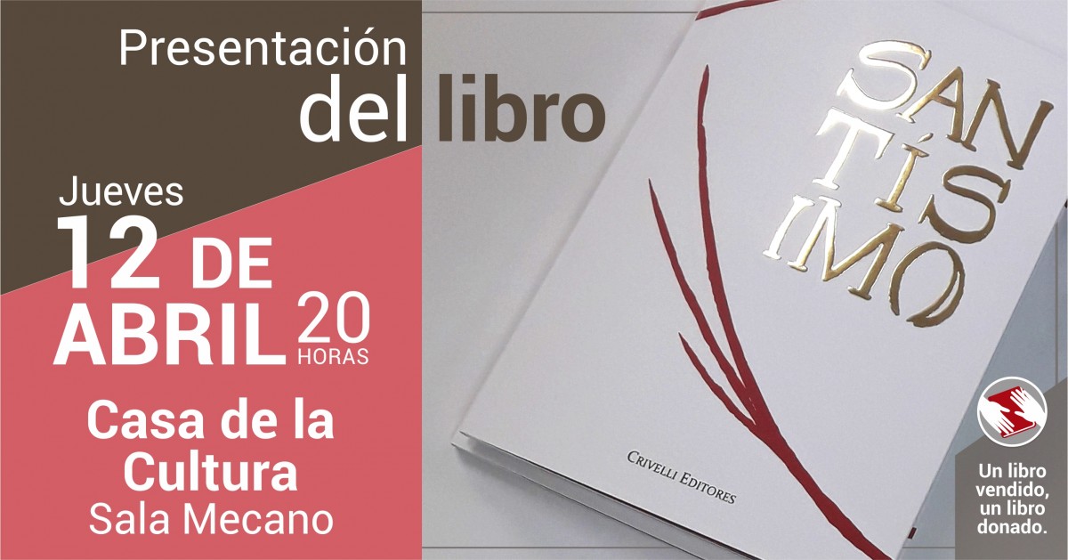 Este jueves 12 de abril a las 20 hs., Crivelli Editores presenta en la Sala Mecano de la Casa de la Cultura de Salta, Caseros 460, este excepcional libro en el cual, con un arte y diseño cuidados, se ofrece una recopilación de oraciones y reflexiones que muchas mujeres y hombres de profunda Fe ofrecieron al Santísimo Sacramento.